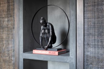 Komplettiere dein Styling mit dieser anmutigen Skulptur einer Frau in der Hocke, umgeben von einem großen Kreis. So ein schönes Accessoire von COCOmaison kann genau die eine freie Stelle auf der Fensterbank oder ein offenes Fach in einem Raumteiler oder Bücherregal füllen. Die Skulptur CIRCLE LADY ist tiefschwarz und aus Polyresin. Sie ist 25 cm breit und 54 cm hoch (einschließlich Sockel). Das Pendant dazu, die Skulptur eines Mannes in der Hocke, ist etwas größer, passt aber perfekt dazu.