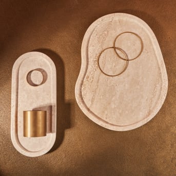 Durch die organische Form und das schöne helle Naturgestein verleihst du mit dieser Schale Ira jedem Raum einen Hauch von Luxus. Du kannst Ira wirklich überall und für alles verwenden: Im Schlafzimmer für deine Schmuckstücke, im Flur für deine Schlüssel, aber auch in der Küche als Servierbrett oder für Obst. Die Schale besteht zu 100% aus Travertin und ist etwa 31 x 40 cm groß. Lieber eine andere Form? Dann schau dir die längliche Schale Idas in unserer COCOmaison Kollektion an.
