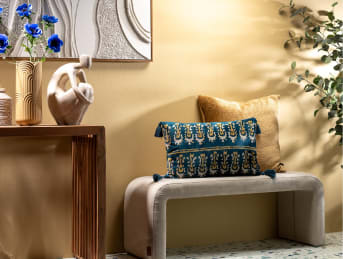 Das Daisy-Kissen von COCOmaison ist ein echter Eyecatcher, der deinem Interieur Luxus und Charakter verleiht. Dieses Dekokissen hat die Größe 40 x 60 cm und besteht aus Viskose-Samt und Baumwolle. Der blaue Vintage-Look mit hübschem Druck sorgt für eine elegante Ausstrahlung in sowohl modernen als auch klassischen Interieurs. Die verspielten Quasten an den Enden des Daisy-Kissens fügen ein charmantes Detail hinzu.