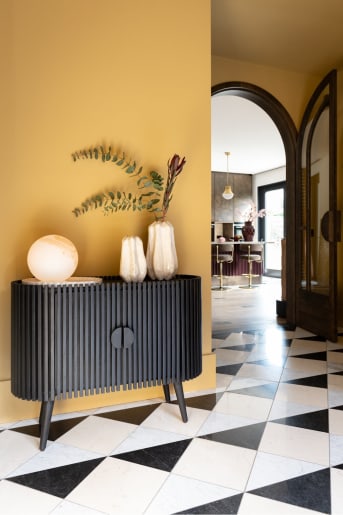 Auf der Suche nach einem Schränkchen mit skandinavischem Look oder einem Hauch von Retro? Lino bietet beides! Dieser schöne ovale Schrank von COCOmaison ist aus Akazienholz und Furnier in Schwarz gefertigt und zeichnet sich durch die auffällige Außenseite aus einzelnen Latten mit dahinterliegendem Leinenstoff aus. Mit einer Größe von 100 cm Breite, 40 cm Tiefe und 75 cm Höhe ist das ein kleines, aber feines Schränkchen, das in keinem Raum fehl am Platz ist. Tipp: Schau dir auch die Variante in Naturfarbe an und kombiniere Lino mit der Bank und dem Wandtisch aus derselben Serie für ein stimmiges Gesamtbild!